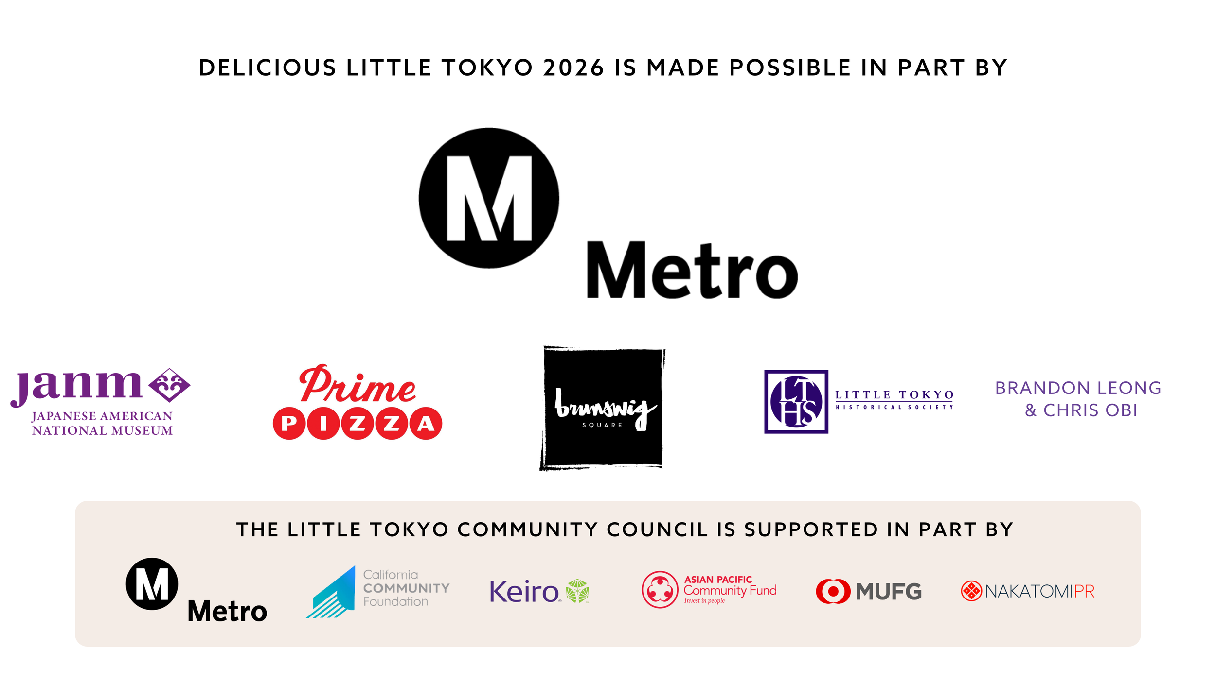 The Little Tokyo Community Council is supported in part by LA Metro, California Community Foundation, Keiro, National Trust for Historic Preservation, Asian Pacific Community Fund, MUFG, and Nakatomi PR.
